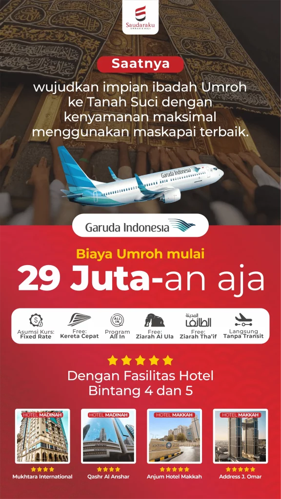 Saudaraku menyediakan pilihan paket umroh dan haji dengan perlengkapan full maupun sebagian.