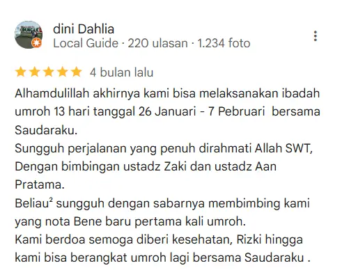 Testimoni Jamaah Travel Saudaraku (2)